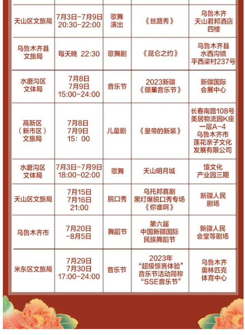 【關(guān)注】2023年7月烏魯木齊演出信息一覽 精彩等著(zhù)你