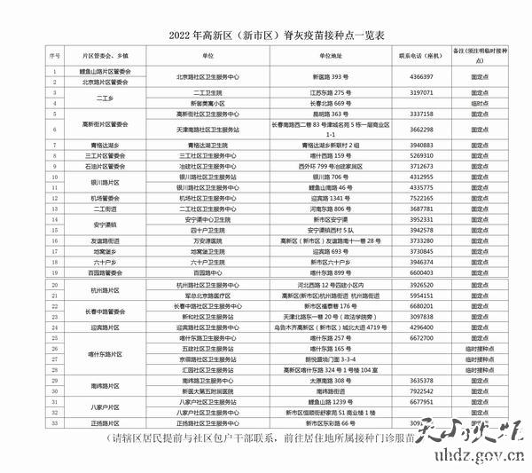 五、2022年高新區(新市區)脊灰疫苗接種點(diǎn)一覽表