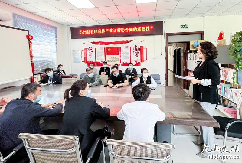 活動(dòng)期間,蘇州路社區第一書(shū)記、“訪(fǎng)惠聚”工作隊隊長(cháng)肖艷用通俗易懂的語(yǔ)言,向在場(chǎng)的單位負責人講解了《中華人民共和國勞動(dòng)法》《中華人民共和國勞動(dòng)合同法》等部分條款。隨后,肖艷結合勞資糾紛典型案例,講解了用法律保護自身權益的方法,還解答了現場(chǎng)有關(guān)各類(lèi)勞動(dòng)法律法規的問(wèn)題。
