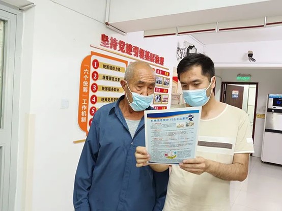 工作人員向居民們發(fā)放宣傳資料并講解養老詐騙相關(guān)知識