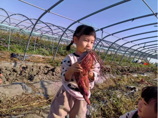 小朋友手舉超大紅薯,展示勞動(dòng)成果