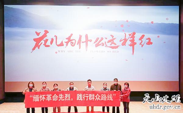 桂林路社區組織青年黨團員觀(guān)看電影《花兒為什么這樣紅》,影片再現了拉齊尼·巴依卡對偉大祖國的赤膽忠心