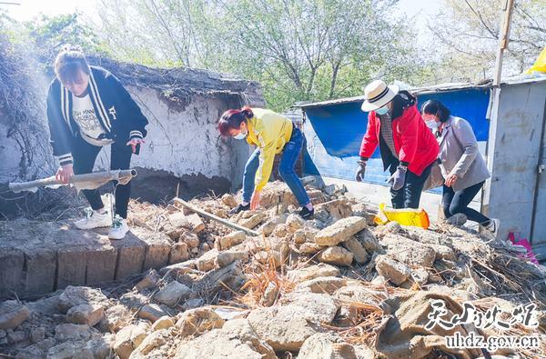 清理現場(chǎng),大家擼起袖子搬運大木頭,手拿鐵鏟和鋤頭將橫梁、墻塊、木柱一點(diǎn)一點(diǎn)拖運到卡車(chē)上,烈日下一派熱火朝天的勞動(dòng)場(chǎng)面。經(jīng)過(guò)半天的奮戰,院中的坍塌物全部清理干凈,小院恢復了往日的寬敞整潔,木塔里普·賽買(mǎi)提夫婦高興得合不攏嘴:“多虧了工作隊,多虧了社區,我們夫婦的心愿總算實(shí)現了,我們什么困難都是靠著(zhù)社區!感謝工作隊,感謝政府,感謝黨!”