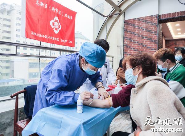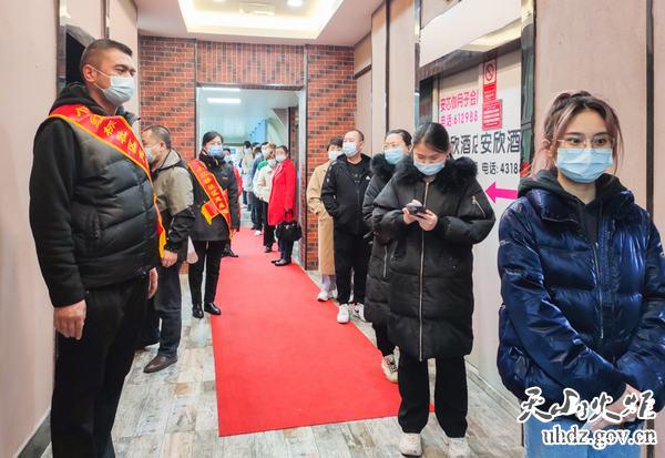 當天,工作隊與社區人員分工負責、各司其職,提醒體檢人員保持安全距離,通過(guò)出示核酸報告、測體溫,無(wú)異常方可進(jìn)入場(chǎng)地抽血、查體等,整個(gè)現場(chǎng)秩序井然,從測量體溫、登記、體檢,不到3個(gè)小時(shí),109名商鋪從業(yè)者全部檢查完畢。待檢驗結果出來(lái)后,商鋪從業(yè)者即可從“智慧健康烏魯木齊”公眾號上查詢(xún)到自己的健康證。