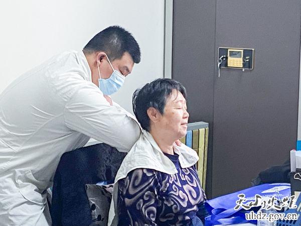 衛生服務(wù)中心醫務(wù)工作者正在給居民做推拿