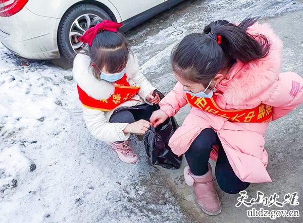 家長(cháng)和其他志愿者一起行動(dòng),清掃垃圾、鏟除小廣告