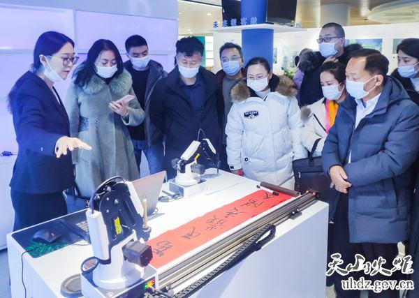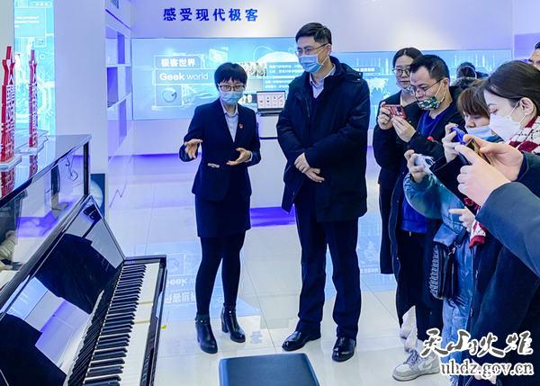 烏魯木齊高端人才創(chuàng )新創(chuàng )業(yè)服務(wù)中心高端人才服務(wù)部部長(cháng)須飛燕對智慧鋼琴進(jìn)行講解