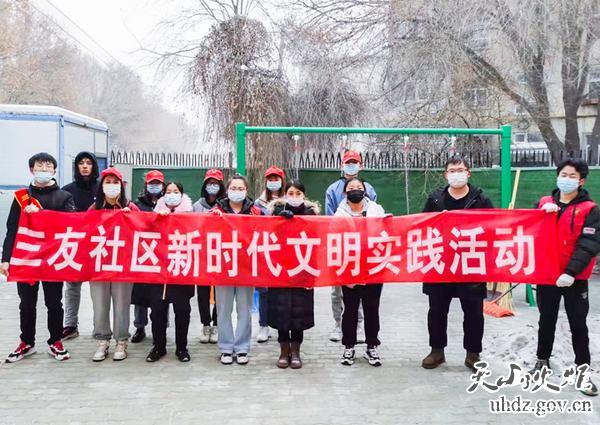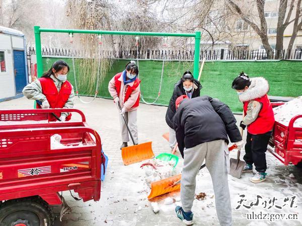 近日,迎賓路片區三友社區新時(shí)代文明實(shí)踐站組織轄區大學(xué)生、高中生等志愿者開(kāi)展掃雪除冰行動(dòng)。
