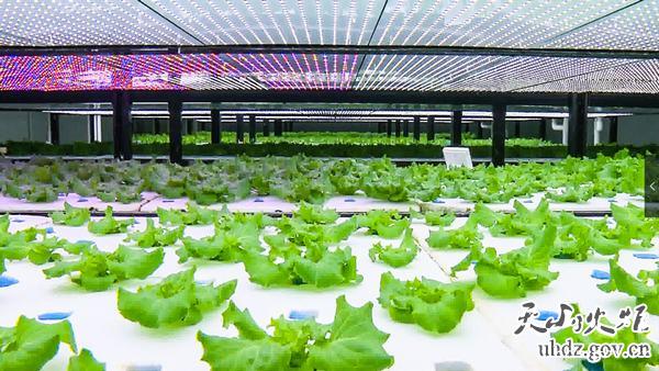 在新疆紫晶川梭高新農業(yè)股份有限公司的LED植物工廠(chǎng)內,綠油油的蔬菜架生機盎然。