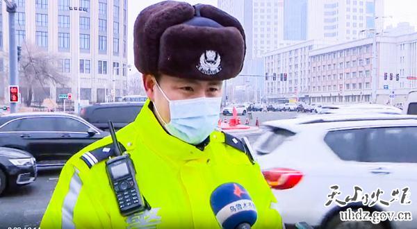 高新區(新市區)交警大隊阿勒泰路中隊中隊長(cháng)謝建明接受采訪(fǎng)