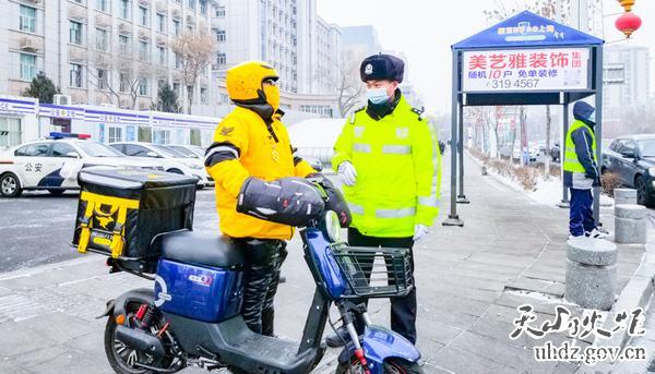 高新區(新市區)交警大隊阿勒泰路中隊中隊長(cháng)謝建明在這個(gè)路口執勤,趁著(zhù)人行紅燈亮起,他給等待過(guò)馬路的電動(dòng)車(chē)駕駛人講解了相關(guān)法規。