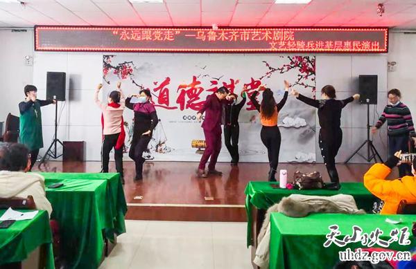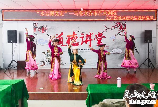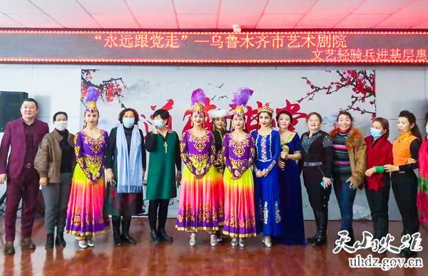 文藝輕騎踏歌行,唱響時(shí)代主旋律,凝聚社會(huì )正能量。近日,烏魯木齊市藝術(shù)劇院文藝工作者組成的“永遠跟黨走”文藝輕騎兵演出小分隊走進(jìn)迎賓路片區新明社區,把精彩的表演送到老百姓家門(mén)口,營(yíng)造出濃厚的節日氛圍,受到社區各族群眾的熱烈歡迎。 舞蹈《珠拉》 歌曲《頌歌獻給親愛(ài)的黨》 共跳民族團結舞 演出中,舞蹈《珠拉》、歌曲《頌歌》、獨舞《情愿》等精彩節目輪番上演,特別是歌曲《頌歌獻給親愛(ài)的黨》,用歌曲的形式表現出中華兒女濃濃的家國情懷,不僅點(diǎn)燃了居民的愛(ài)國之心,更把整場(chǎng)演出推向了高潮。舞臺上演員們熱情表演,舞臺下黨員群眾拍手叫好,時(shí)不時(shí)還拿出手機記錄著(zhù)精彩的瞬間。整場(chǎng)活動(dòng)表現形式多樣,內容豐富,大家用歌聲、舞蹈、演奏,表達了對新年的期許,對祖國的熱愛(ài)。 合影 “今天有這么多好看的節目,讓我們大飽眼?!,F在咱們的物質(zhì)條件好了,精神生活也要緊跟步伐,我們都非常喜歡這樣的文化活動(dòng),希望社區能多多舉辦!”參加活動(dòng)的居民徐江鈴高興地說(shuō)。 “文藝演出進(jìn)社區,文化惠民暖人心。以后還會(huì )不定期組織文藝演出,不斷豐富居民的精神文化生活?!毙旅魃鐓^黨委書(shū)記曾小鳳表示,這場(chǎng)送到家門(mén)口的文藝演出,不僅豐富了居民的精神文化生活,更促進(jìn)了社區與居民之間的情感交流,提升了轄區居民獲得感、幸福感和安全感。