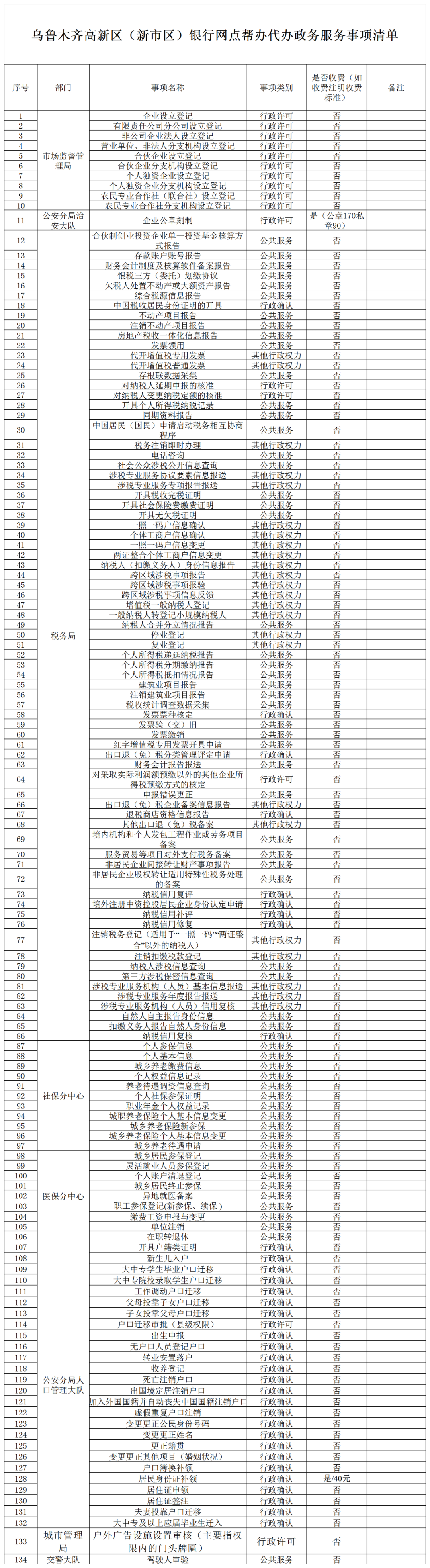 烏魯木齊高新區(新市區)銀行網(wǎng)點(diǎn)幫辦代辦政務(wù)服務(wù)事項清單