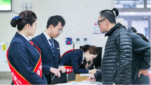 在建設銀行四平路支行,銀行工作人員正在為辦事群眾提供政務(wù)服務(wù)幫辦代辦咨詢(xún)