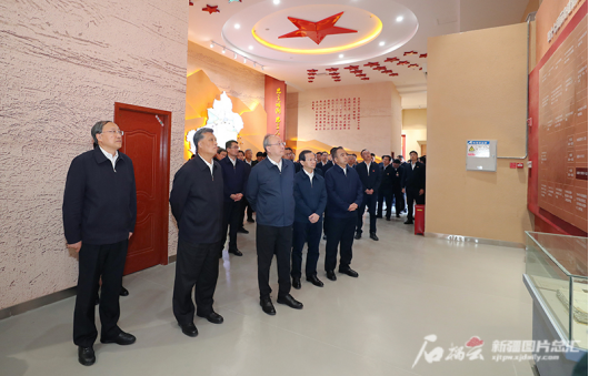 10月19日,尹力、馬興瑞、殷勇、艾爾肯·吐尼亞孜等在參觀(guān)兵團第十四師47團老兵精神展示館。石榴云/新疆日報記者 李瑞攝