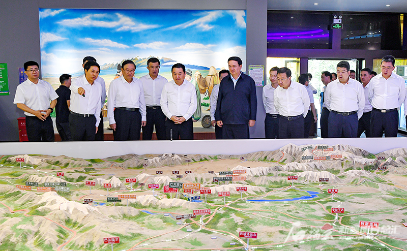 8月30日,遼寧省黨政代表團實(shí)地察看塔城重點(diǎn)開(kāi)發(fā)開(kāi)放試驗區規劃展示。石榴云/新疆日報記者 周鵬攝 在疆期間,遼寧省黨政代表團來(lái)到烏魯木齊市、昌吉市、塔城地區和兵團第八師石河子市、第九師白楊市實(shí)地調研。代表團深入昌吉特變電工輸變電產(chǎn)業(yè)園和石河子天業(yè)集團、花園機場(chǎng),調研產(chǎn)業(yè)發(fā)展、科技創(chuàng )新工作和雙方合作項目進(jìn)展;考察塔城市社區愛(ài)國主義教育基地,看望基層先進(jìn)模范和群眾代表;走進(jìn)塔城地區人民醫院、塔城職業(yè)技術(shù)學(xué)院和兵團第九師醫院、小白楊中學(xué)以及遼寧省農業(yè)科學(xué)院塔城分院,調研醫療、教育、農業(yè)科技援疆工作;實(shí)地察看塔城重點(diǎn)開(kāi)發(fā)開(kāi)放試驗區規劃展示、遼疆產(chǎn)業(yè)園和兵團第九師163團創(chuàng )新創(chuàng )業(yè)大廈建設運營(yíng)、產(chǎn)業(yè)合作發(fā)展情況;參觀(guān)調研自治區博物館、新疆兵團軍墾博物館和塔城市新時(shí)代文明實(shí)踐中心,了解文化潤疆工作情況。代表團還走訪(fǎng)了遼寧援疆前方指揮部,看望慰問(wèn)援疆干部人才并召開(kāi)座談會(huì )。