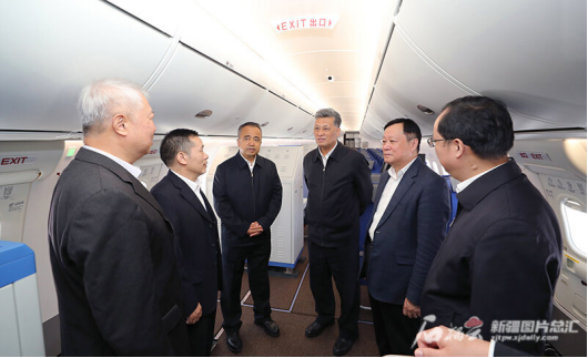 馬興瑞、艾爾肯·吐尼亞孜等參觀(guān)了國產(chǎn)飛機C919、ARJ21。C919大型客機是我國首次按照國際通行適航標準自行研制、具有自主知識產(chǎn)權的噴氣式干線(xiàn)客機;ARJ21是我國按照國際標準研制的具有自主知識產(chǎn)權的支線(xiàn)客機。此次中國商飛攜兩種國產(chǎn)飛機機型來(lái)新疆,開(kāi)展了為期一個(gè)月的演示飛行,航線(xiàn)輻射疆內所有機場(chǎng),其中包括疆內東西最長(cháng)航線(xiàn)哈密至喀什、南北最長(cháng)航線(xiàn)于田至喀納斯、最短航線(xiàn)伊寧至昭蘇以及最高的高高原機場(chǎng)紅其拉甫機場(chǎng)。