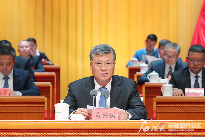 8月20日,自治區黨委書(shū)記、新疆生產(chǎn)建設兵團黨委第一書(shū)記、第一政委馬興瑞出席會(huì )議并講話(huà)。石榴云/新疆日報記者 崔志堅 攝