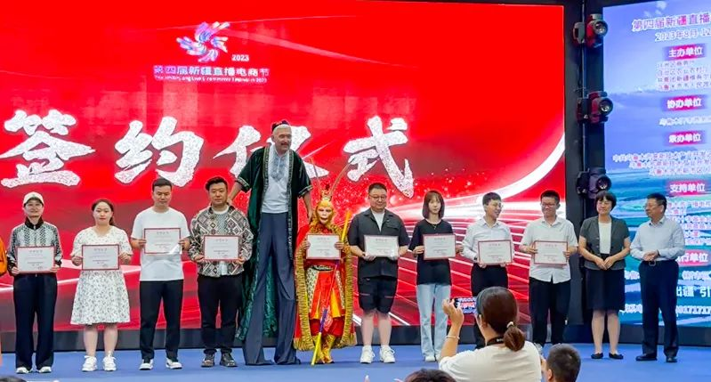 開(kāi)幕式上,丁國沖與俄羅斯歐洲資源公司合伙人彭海洋簽訂了跨境電商合作協(xié)議。電商節為烏魯木齊高新區(新市區)絲路數字經(jīng)濟產(chǎn)業(yè)研究院、烏魯木齊高新區(新市區)電商產(chǎn)業(yè)協(xié)會(huì )特色產(chǎn)品專(zhuān)業(yè)委員會(huì )、倉儲物流專(zhuān)業(yè)委員會(huì )、創(chuàng )投專(zhuān)業(yè)委員會(huì )、數字經(jīng)濟專(zhuān)業(yè)委員會(huì )及會(huì )員授牌,并為10位達人主播代表頒發(fā)第四屆新疆直播電商節推廣大使證書(shū)。開(kāi)幕式上還舉行了絲路電商發(fā)展論壇,極大提升了企業(yè)和網(wǎng)絡(luò )主播的參與熱情。