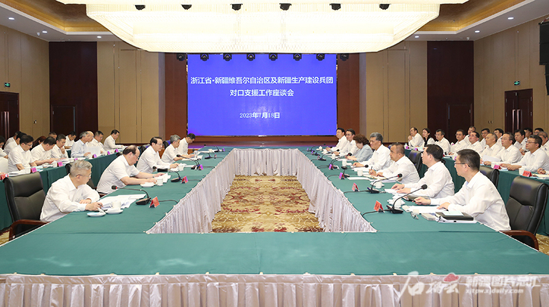 7月18日,浙江省·新疆維吾爾自治區及新疆生產(chǎn)建設兵團對口支援工作座談會(huì )在阿拉爾市召開(kāi)。石榴云/新疆日報記者 崔志堅攝