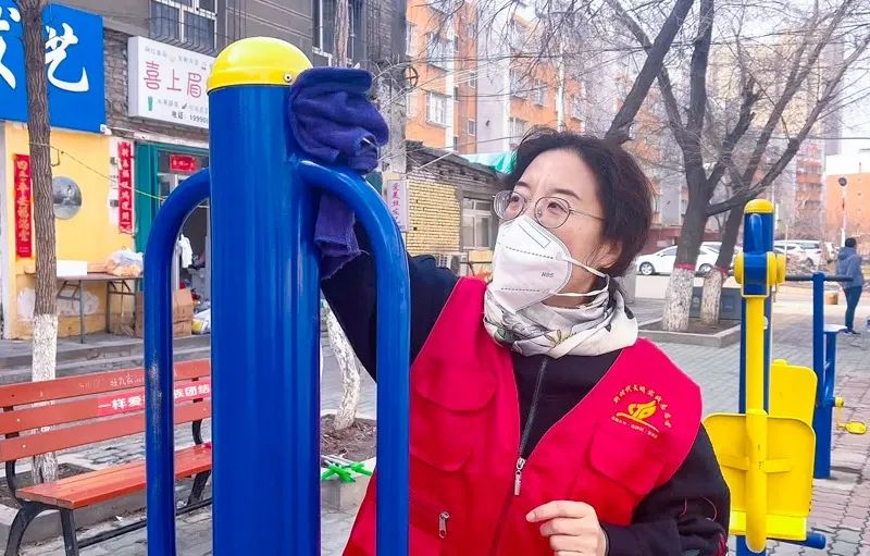 將落葉、煙蒂等垃圾一一撿起,把健身器材、長(cháng)椅、宣傳欄擦拭干凈,讓衛生死角徹底消除……