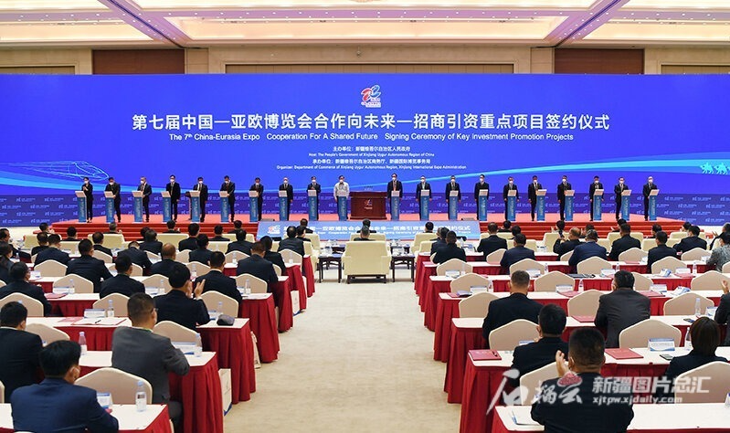 9月20日下午,第七屆中國—亞歐博覽會(huì )舉行合作向未來(lái)—招商引資重點(diǎn)項目簽約儀式。本屆博覽會(huì )預計簽約招商引資項目300多個(gè)、總額近1萬(wàn)億元,涉及新疆油氣、煤炭、礦產(chǎn)、綠色化工、新能源新材料、水利水電、數字信息、現代農業(yè)、物流運輸等多個(gè)領(lǐng)域。