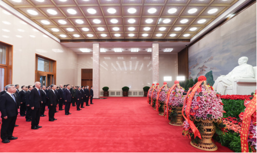 12月26日,中共中央在北京人民大會(huì )堂舉行紀念毛澤東同志誕辰130周年座談會(huì )。座談會(huì )前,習近平、李強、趙樂(lè )際、王滬寧、蔡奇、丁薛祥、李希、韓正等領(lǐng)導同志來(lái)到毛主席紀念堂瞻仰毛澤東同志遺容。新華社記者 鞠鵬 攝 座談會(huì )前,習近平、李強、趙樂(lè )際、王滬寧、蔡奇、丁薛祥、李希、韓正等領(lǐng)導同志來(lái)到毛主席紀念堂。北大廳內,中共中央,全國人大常委會(huì ),國務(wù)院,全國政協(xié),中央軍委,各民主黨派、全國工商聯(lián)和無(wú)黨派愛(ài)國人士敬獻的花籃擺放在毛澤東同志坐像正前方。習近平等向毛澤東同志坐像三鞠躬,隨后來(lái)到瞻仰廳,瞻仰了毛澤東同志的遺容。 |