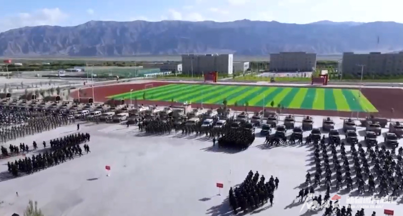武裝拉動(dòng)演訓在南疆某地舉行。新疆軍區、武警、邊檢、公安、新疆生產(chǎn)建設兵團民兵等各方力量組成共3000人的演訓隊伍,出動(dòng)直升機、無(wú)人機和裝甲車(chē)、突擊車(chē)等各類(lèi)車(chē)輛,機動(dòng)集結,嚴陣以待。