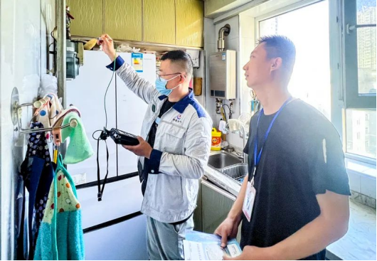在入戶(hù)安檢工作中,志愿者和燃氣公司工作人員來(lái)到轄區居民家及餐飲店鋪中進(jìn)行燃氣安全隱患排查“體檢”和安全常識講解,通過(guò)為群眾提供標準化管理的“一站式”安檢服務(wù),為群眾入戶(hù)送平安。