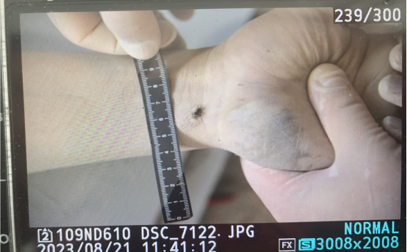 6、李豪(死者)左手有明顯電灼傷痕跡。