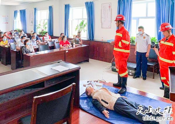 “輕拍昏迷者雙肩,判斷是否有意識。觀(guān)察胸部是否有起伏,判斷是否有呼吸。如果沒(méi)有,就采用雙手疊扣法,對準雙乳中間按壓……”在五建社區會(huì )議室,國家應急礦山救護基地(新疆)隊員向居民演示如何在突發(fā)情況下做心肺復蘇。