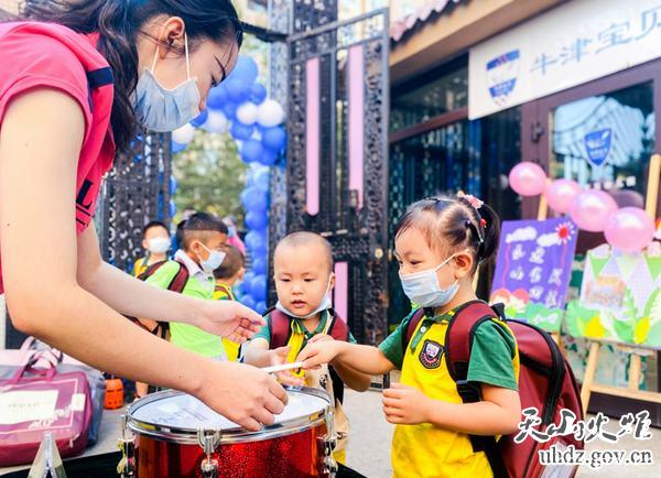 一入園,小朋友們就收到了工作隊員和老師們精心準備的“擊鼓明志”“聰明伶俐”“大吉大利”“平平安安”“身體棒棒”“快快樂(lè )樂(lè )”等6件大禮。