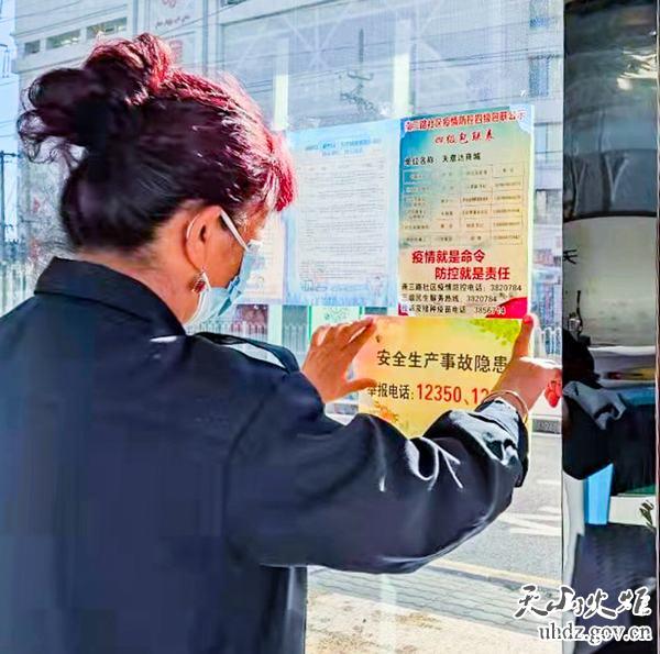 地窩堡鄉正在張貼安全生產(chǎn)監督舉報宣傳單