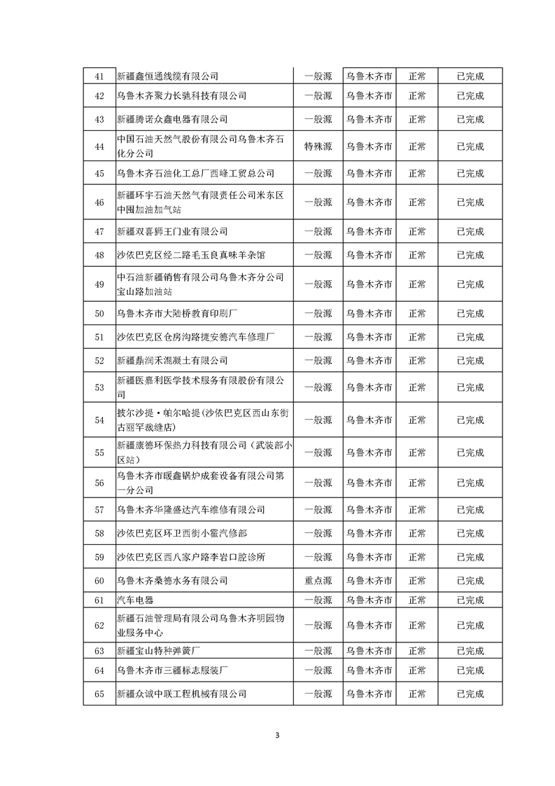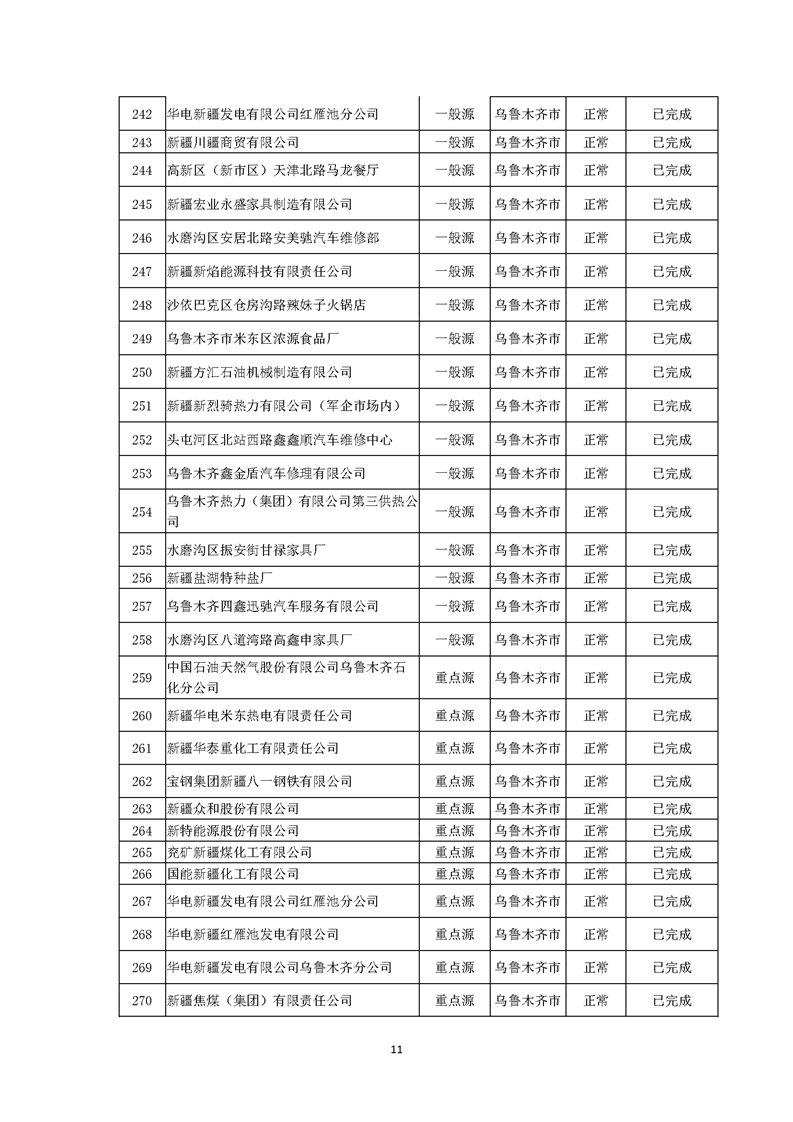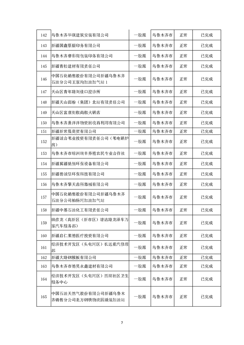 烏魯木齊市2023年第一季度污染源隨機抽查信息公開(kāi)結果明細