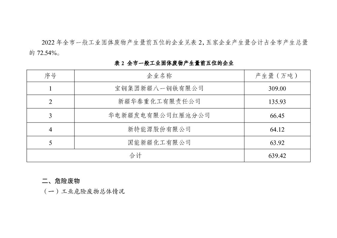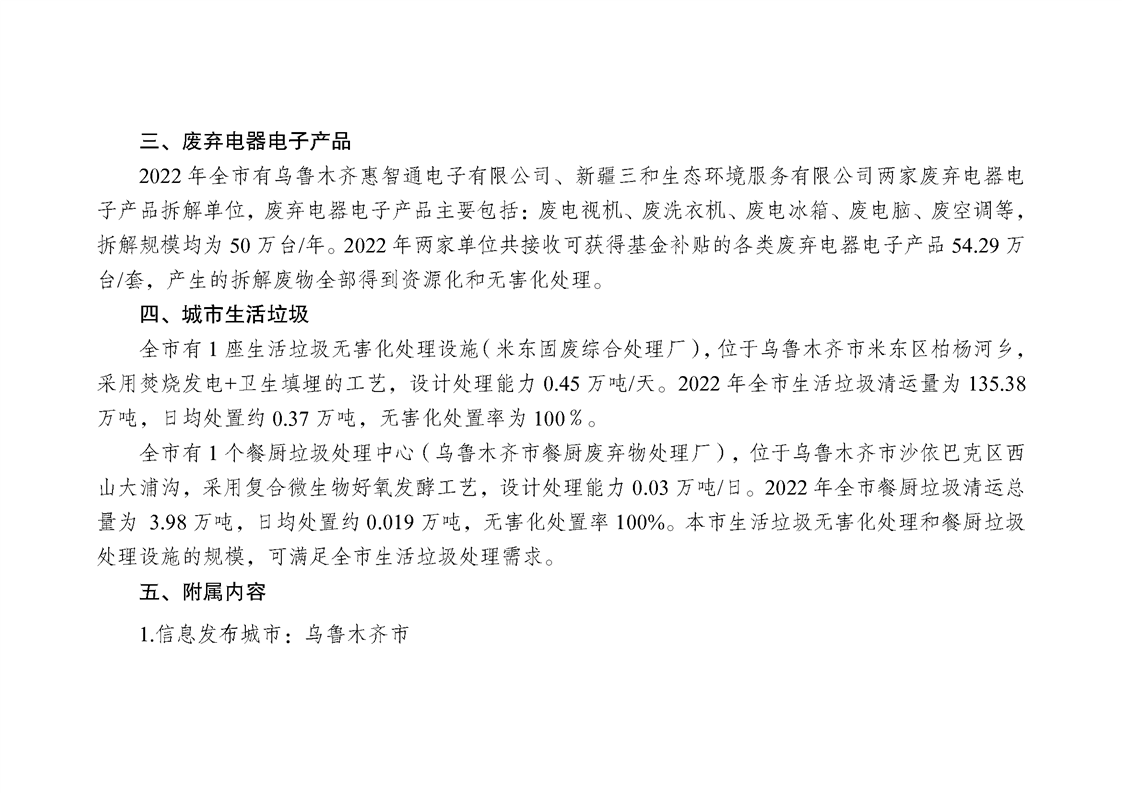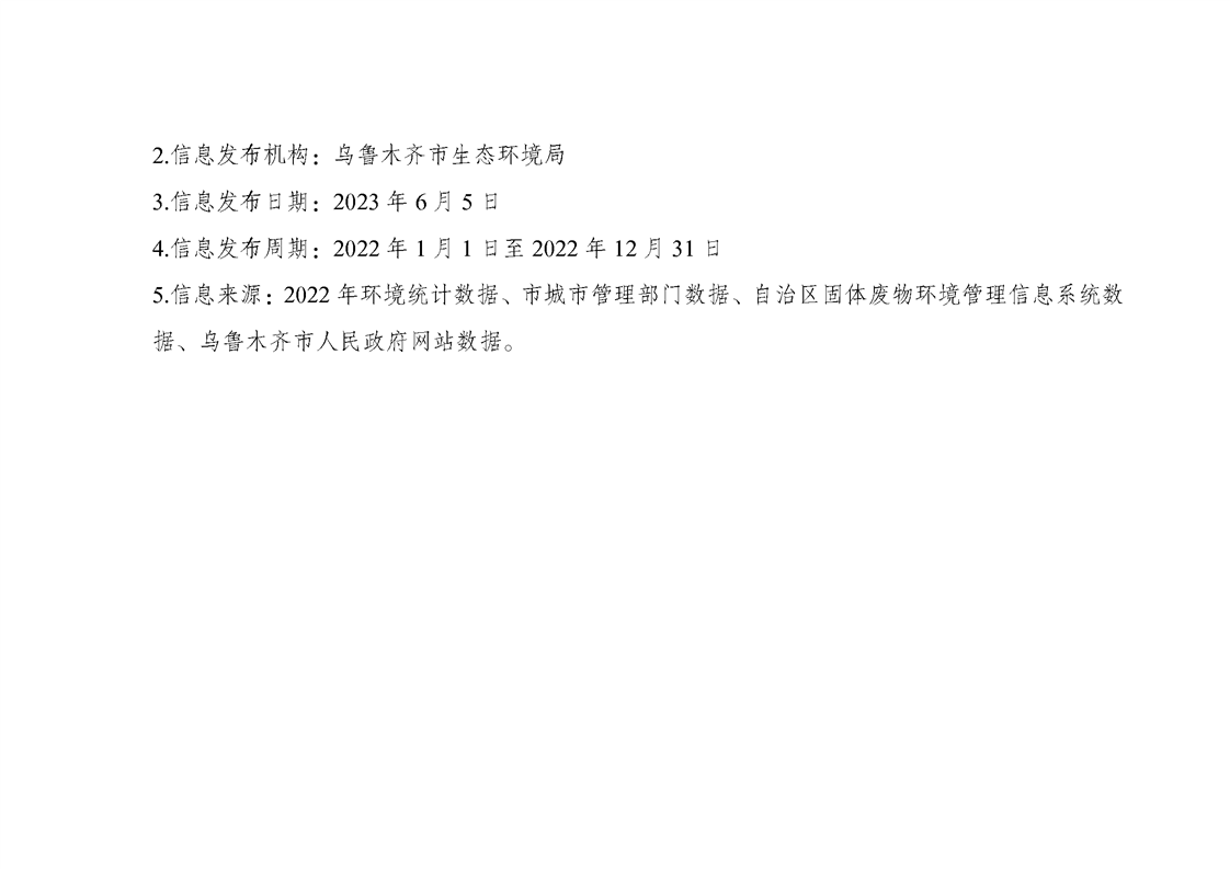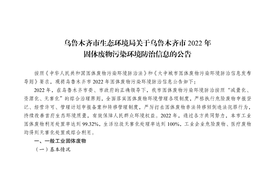 烏魯木齊市生態(tài)環(huán)境局關(guān)于烏魯木齊市2022年固體廢物污染環(huán)境防治信息的公告