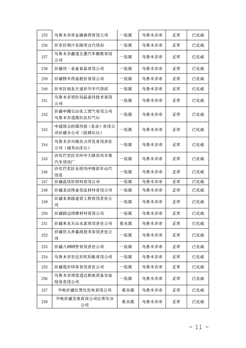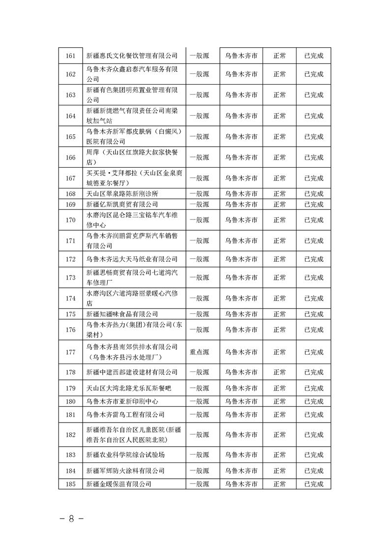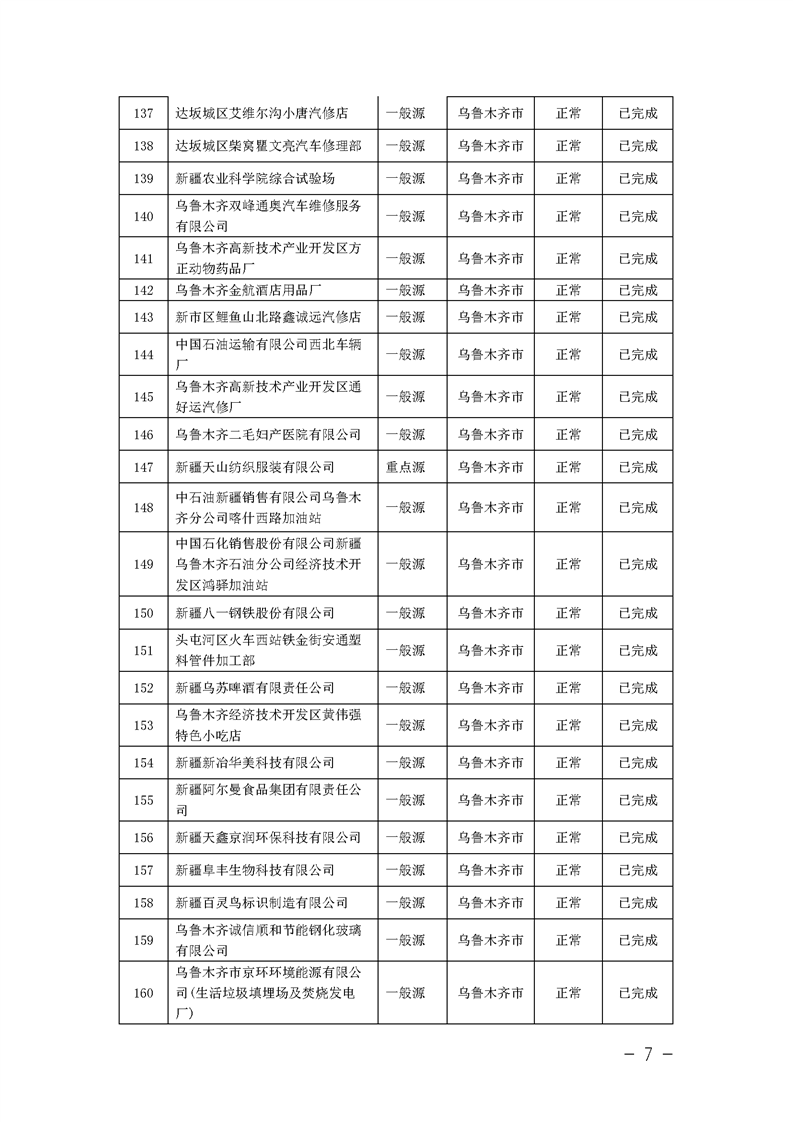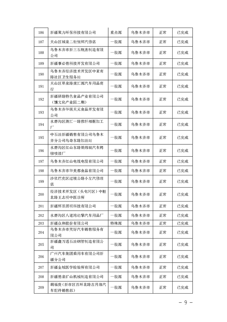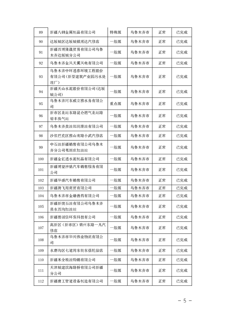 烏魯木齊市2023年第二季度污染源隨機抽查信息公開(kāi)結果明細