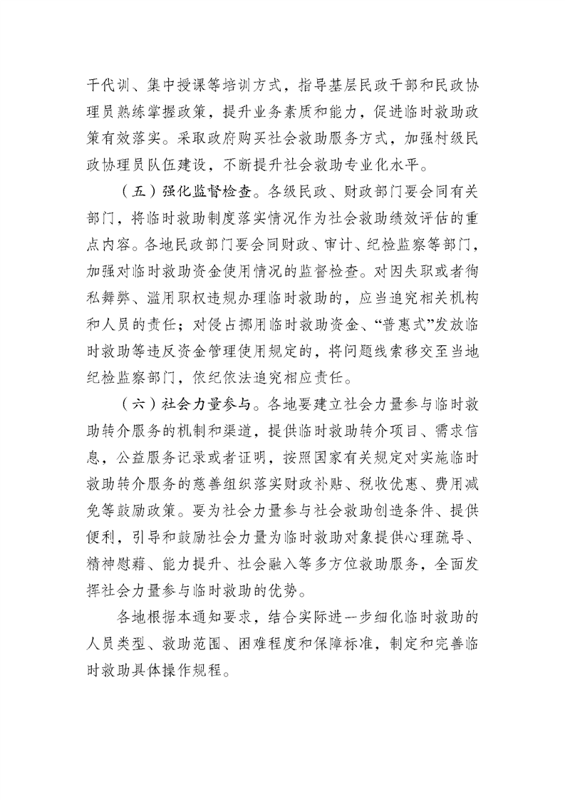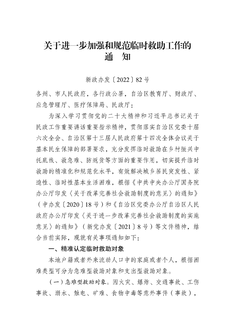關(guān)于進(jìn)一步加強和規范臨時(shí)救助工作的通知