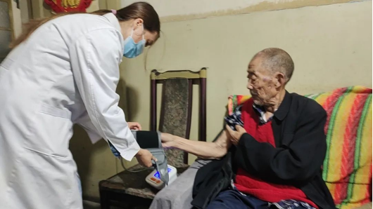 醫護人員上門(mén)為89歲的李月桂老人檢查健康狀況