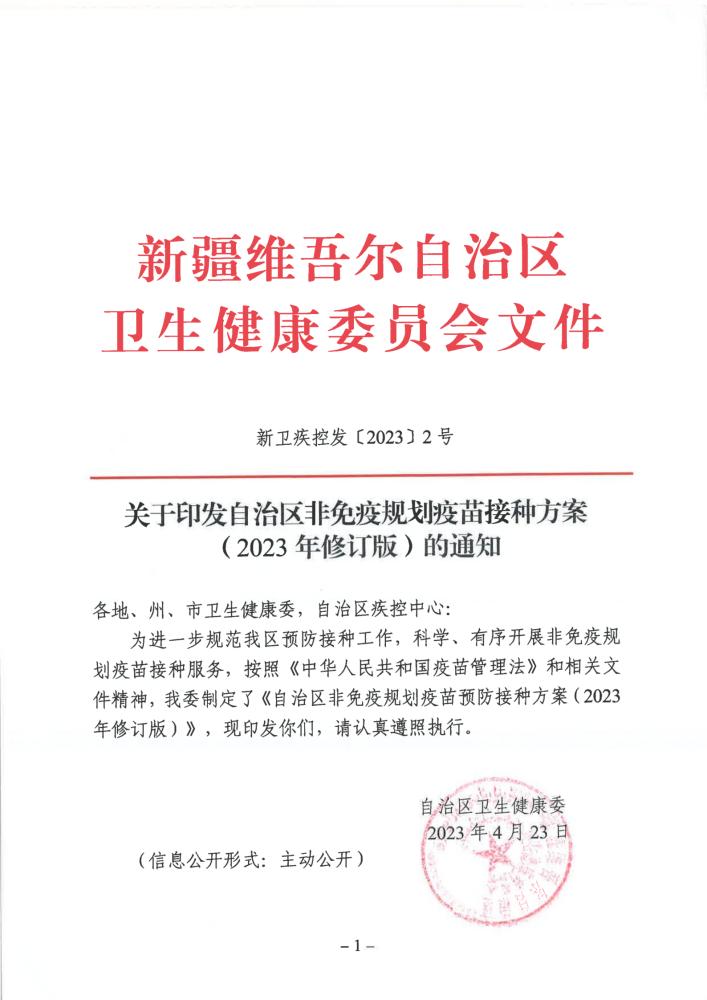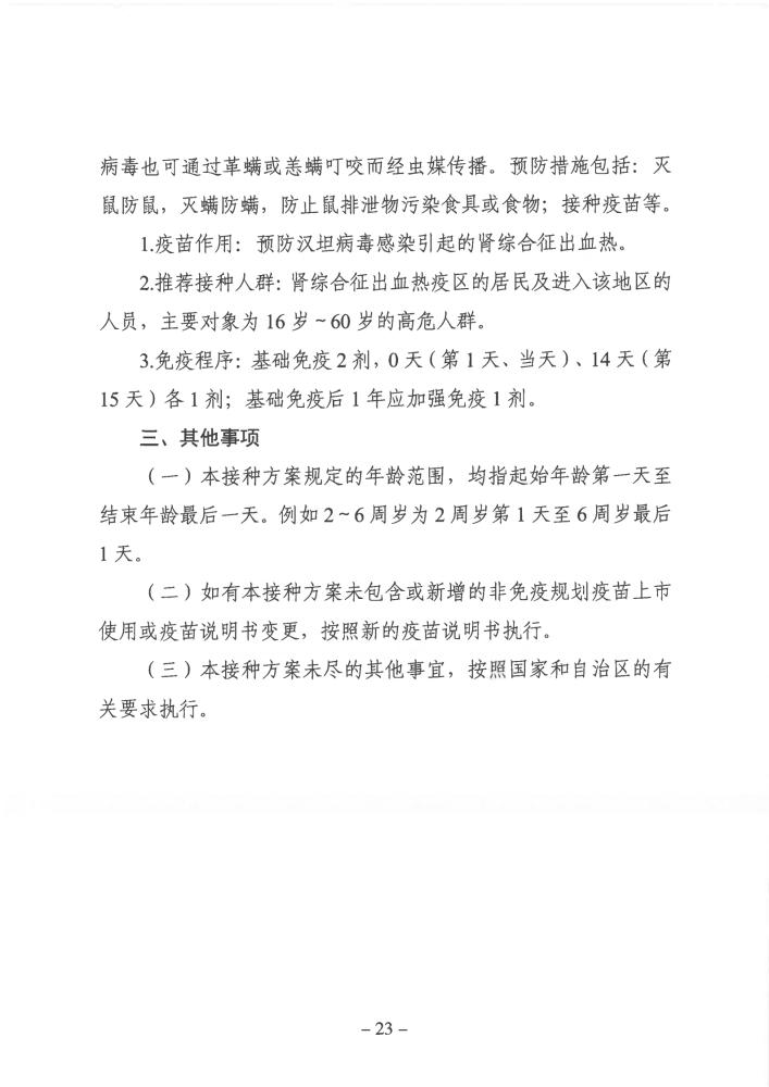 關(guān)于印發(fā)自治區非免疫規劃疫苗接種方案(2023年修訂版)的通知