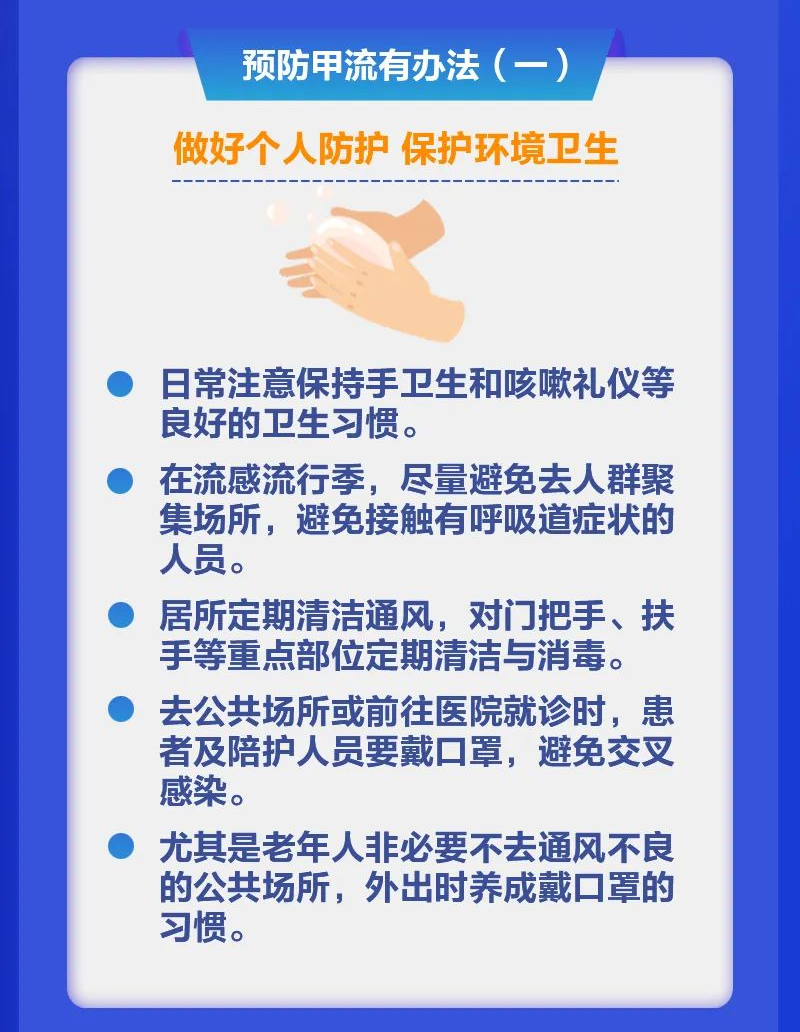 預防甲流,這些知識點(diǎn)要知道! 來(lái)源: 發(fā)布時(shí)間:2023-03-13 瀏覽次數: 次 【字體:小 大】 來(lái)源:健康中國、《大眾健康》雜志 審核:國家健康科普專(zhuān)家庫專(zhuān)家、北京大學(xué)第一醫院感染疾病科主任醫師 王貴強 策劃:王寧 制圖:王珺珂 編輯:余運西 【打印正文】 分享到: 【字體:小 大】