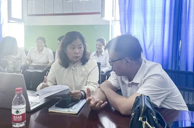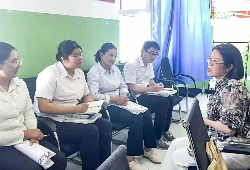趙東霞與洛浦縣杭桂鎮中學(xué)數學(xué)教研組老師進(jìn)行教學(xué)研討