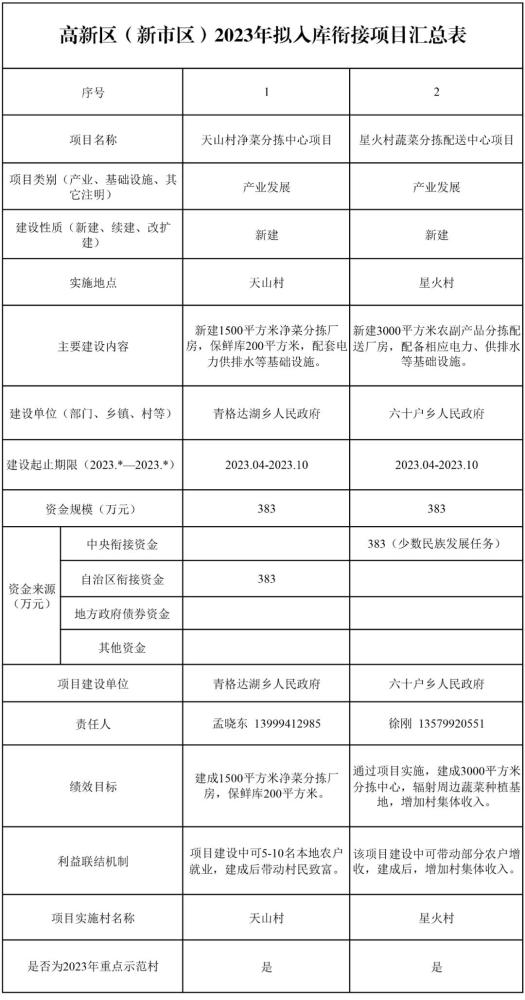 【公示】關(guān)于對高新區(新市區)2023年鞏固拓展脫貧攻堅成果同鄉村振興有效銜接項目新增擬入庫項目的公示