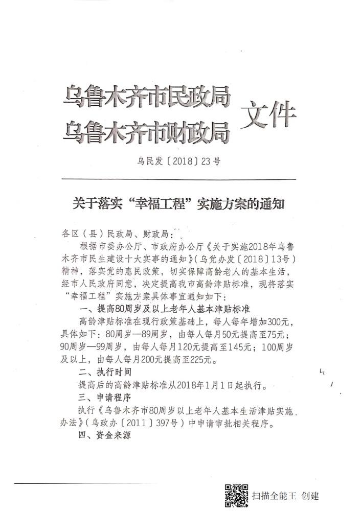 《關(guān)于落實(shí)“幸福工程”實(shí)施方案的通知》烏民發(fā)〔2018〕23號